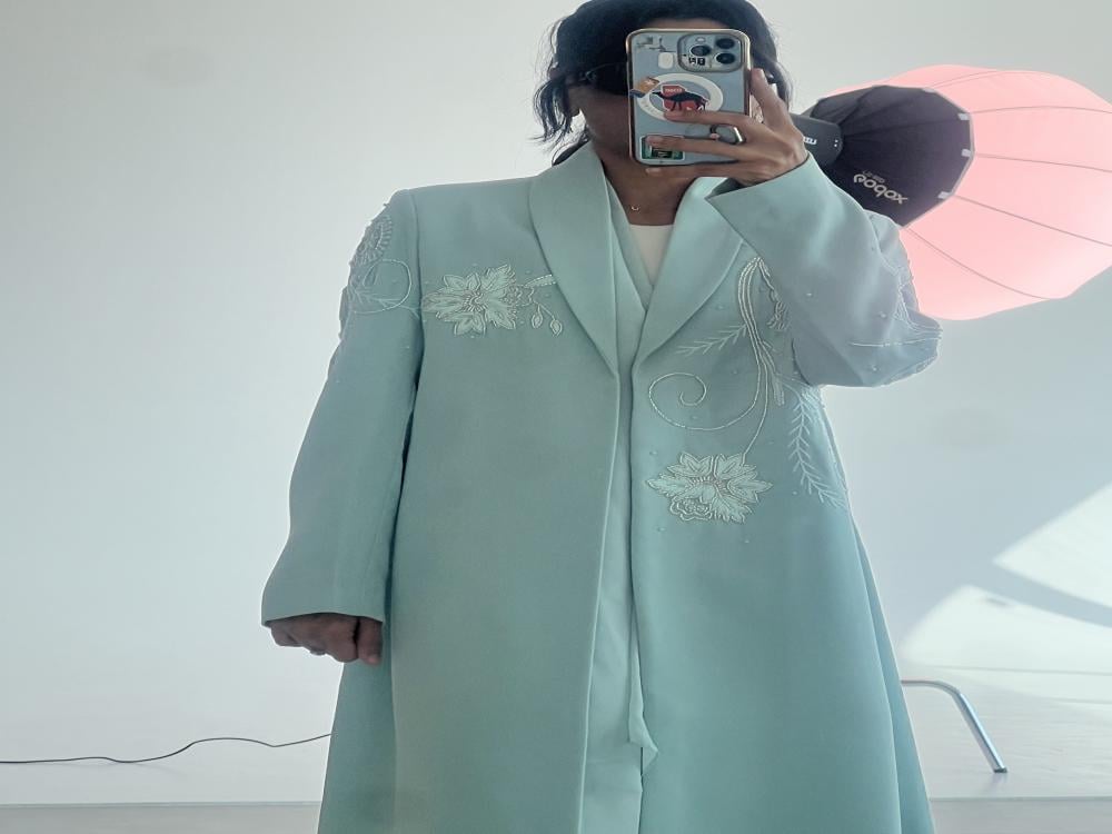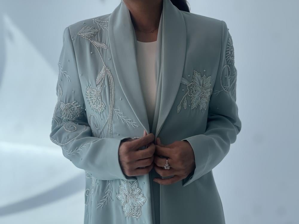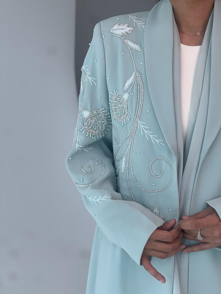 كريب واقف مشكوك مع طرحة لون تيفاني
