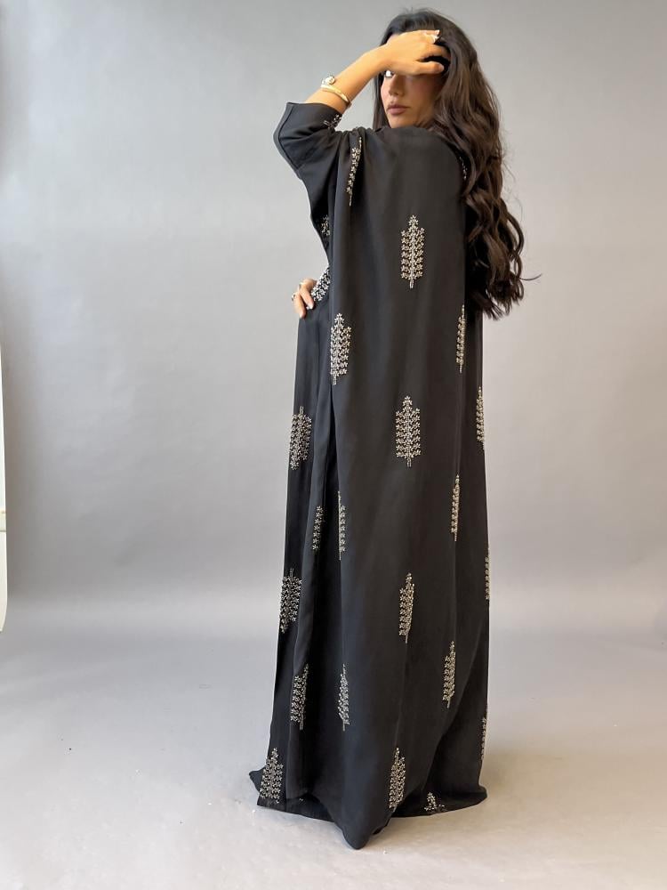 حريررمغسول هندي مشكوك قصة نص بشت لونه اسود مع طرحة