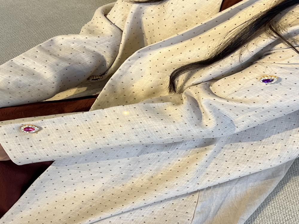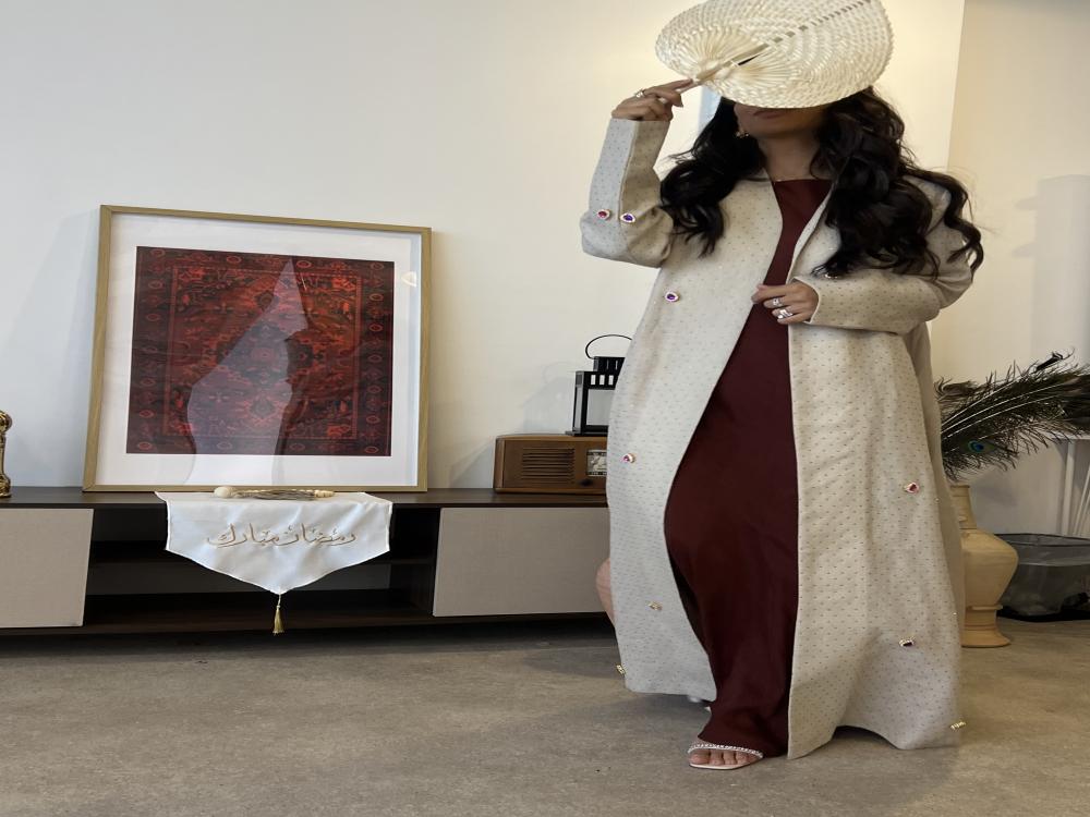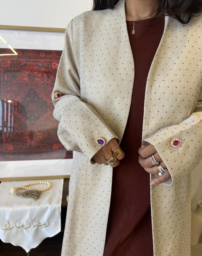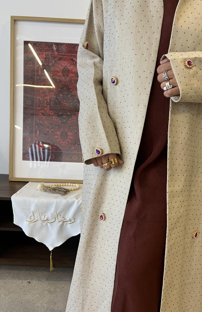 لينن هندي من الامام مرصع احجار و كرستالات و من الخلف ساده قصة A cut مع طرحة