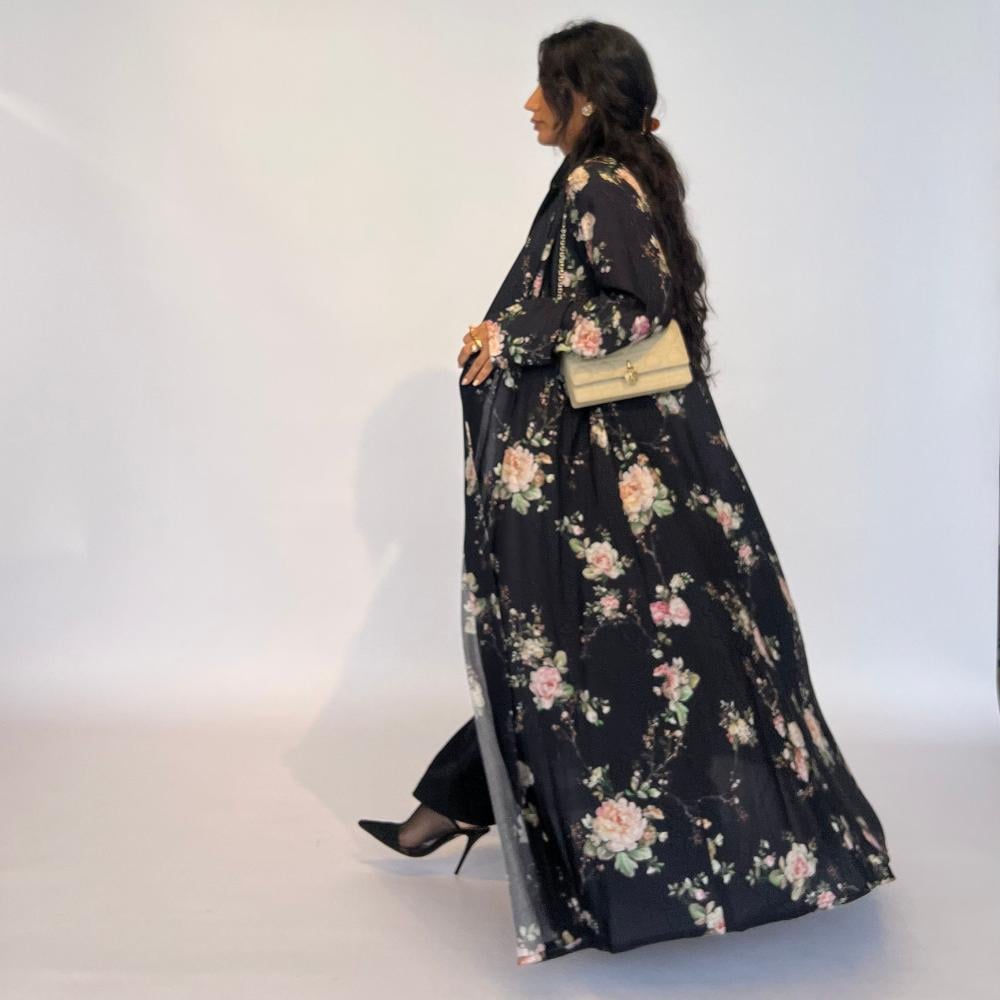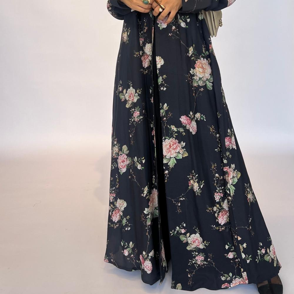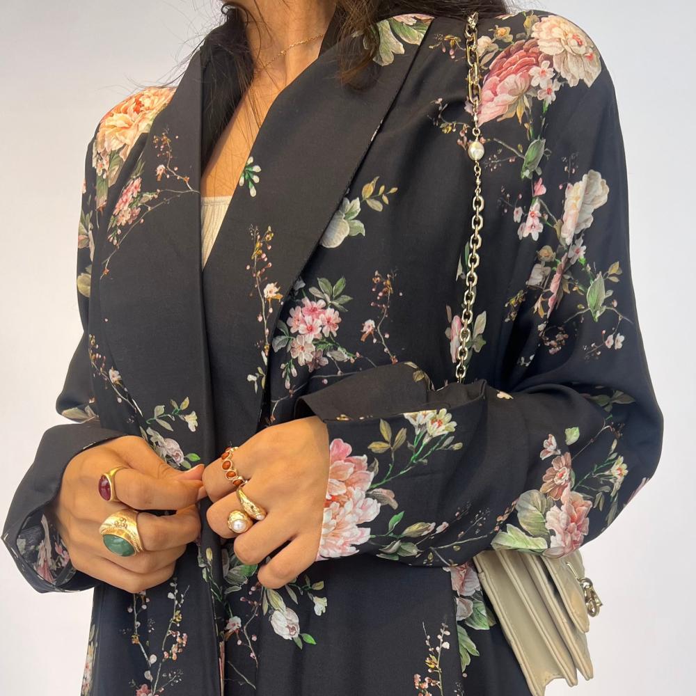قماش قطن خفيف قصه بليزر مشجر ورود مع طرحة ساده