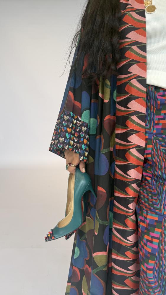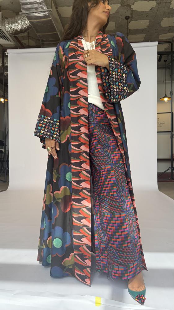 عبايه قماش قطن طبيعي انجليزي ب ثلاث طبعات مع طرحة