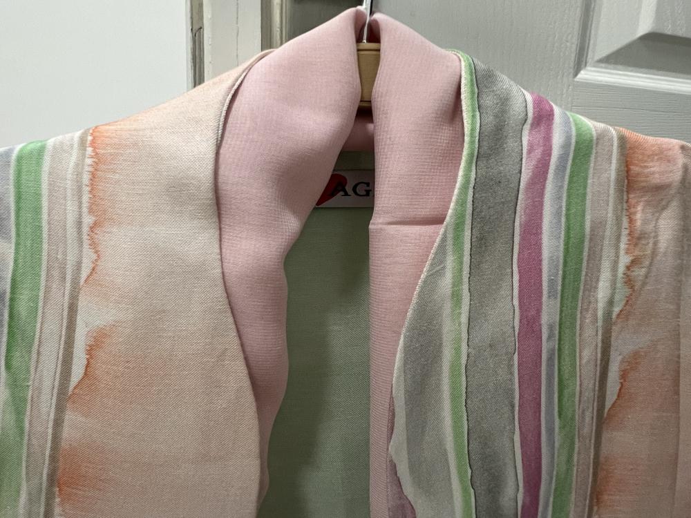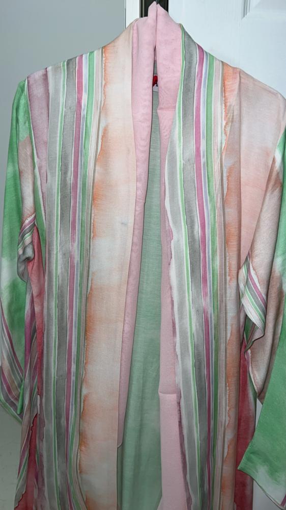 قماش قطن مع لينن قصه ربع كلوش مع طرحة مرسوم بلون الوردي الفاتح و الاخضر مع طرحة ورديه