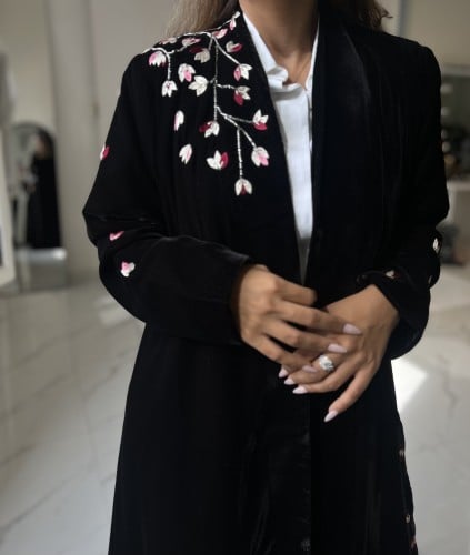 عبايه بقماش قطن انجليزي طبيعي مع طرحة